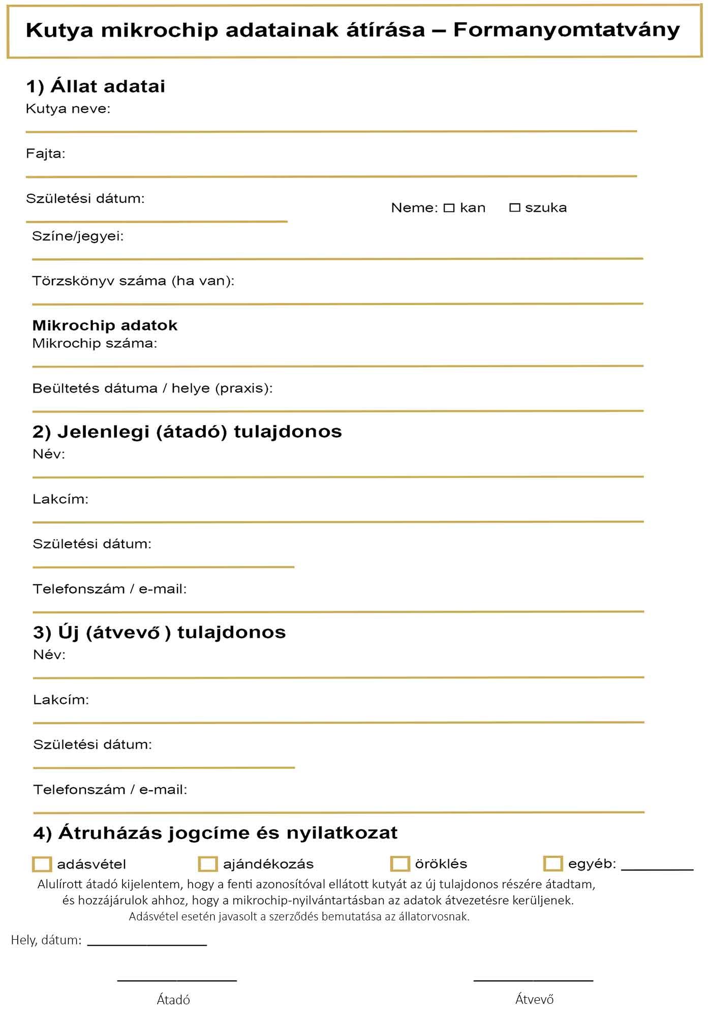 Kutya mikrochip adatainak átírása – formanyomtatvány